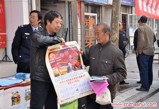 柞水新聞?dòng)?2月4日,柞水縣為隆重紀(jì)念12.4全國(guó)法制宣傳日確立十周年,在縣依法治縣領(lǐng)導(dǎo)小組辦公室的組織下,全縣40個(gè)行政執(zhí)法單位和16個(gè)鄉(xiāng)鎮(zhèn),集中開展以“弘揚(yáng)法治精神、促進(jìn)社會(huì)和諧”為主題,形式多樣的法制宣傳教育活動(dòng)??h委副書記劉春茂、副縣長(zhǎng)張芳忠等領(lǐng)導(dǎo)到縣城區(qū)各單位宣傳點(diǎn)檢查指導(dǎo)工作,縣委辦公室、政府辦公室、縣委宣傳部及司法局同志陪同。