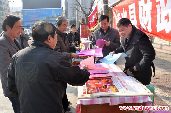 財(cái)政局宣傳點(diǎn)為群眾分發(fā)材料
