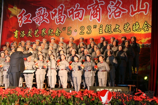 本網(wǎng)訊(記者 汪锳)昨晚,由市文聯(lián)主辦的“紅歌唱響商洛山”商洛文藝界紀念“五·二三”講話發(fā)表六十九周年主題文藝晚會在市政府禮堂舉行,近百名文藝愛好者表演了大合唱、舞蹈、詩朗誦、秦腔、歌伴舞等節(jié)目。