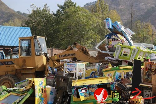 本網(wǎng)訊 (見習(xí)記者 楊鑫)十月二十五日,市公安局在商州區(qū)楊峪河鎮(zhèn)集中銷毀一批賭博游戲機(jī)。近期,市公安局開展了“鏟賭患·正風(fēng)氣”專項(xiàng)整治活動(dòng),目前全市累計(jì)查處各類賭博案件五十一起,搗毀賭博游戲機(jī)二百二十六臺(tái),收繳涉賭游戲機(jī)三百零三臺(tái),有力打擊了各類賭博違法犯罪活動(dòng),凈化了社會(huì)風(fēng)氣。