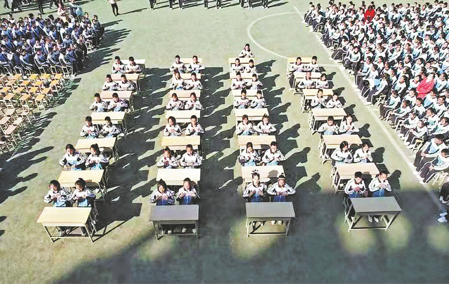 為貫徹落實(shí)“雙減”政策,切實(shí)做好課后服務(wù)工作,我市各地各學(xué)校積極開展體育、文化等方面的特色文體活動(dòng),促進(jìn)學(xué)生全面發(fā)展。圖為11月25日,丹鳳縣初級(jí)中學(xué)舉行課桌舞比賽活動(dòng),展示學(xué)生團(tuán)結(jié)拼搏、奮發(fā)向上的精神面貌。 (高 鴻 攝)