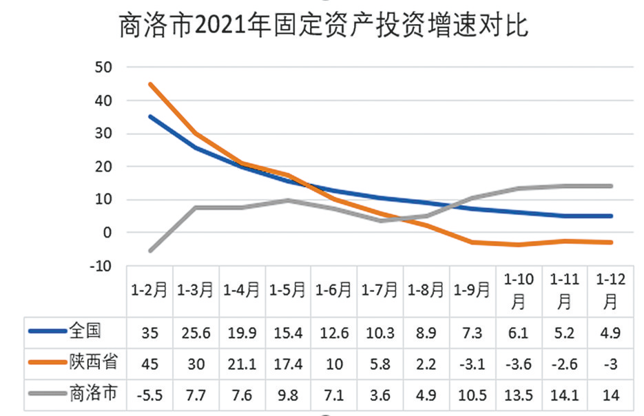 2021年,我市全面貫徹新發(fā)展理念,持續(xù)擴(kuò)大有效投資,以高質(zhì)量項目建設(shè)引領(lǐng)經(jīng)濟(jì)高質(zhì)量發(fā)展,投資增速持續(xù)上揚(yáng),投資質(zhì)量不斷改善。全年固定資產(chǎn)投資同比增長14%,分別高于全國、全省9.1、17個百分點,進(jìn)入陜西省第一方陣。新能源、新材料等戰(zhàn)略性新興產(chǎn)業(yè)投資力度加大,帶動全市投資質(zhì)量和效益不斷提高,實現(xiàn)了“十四五”良好開局。