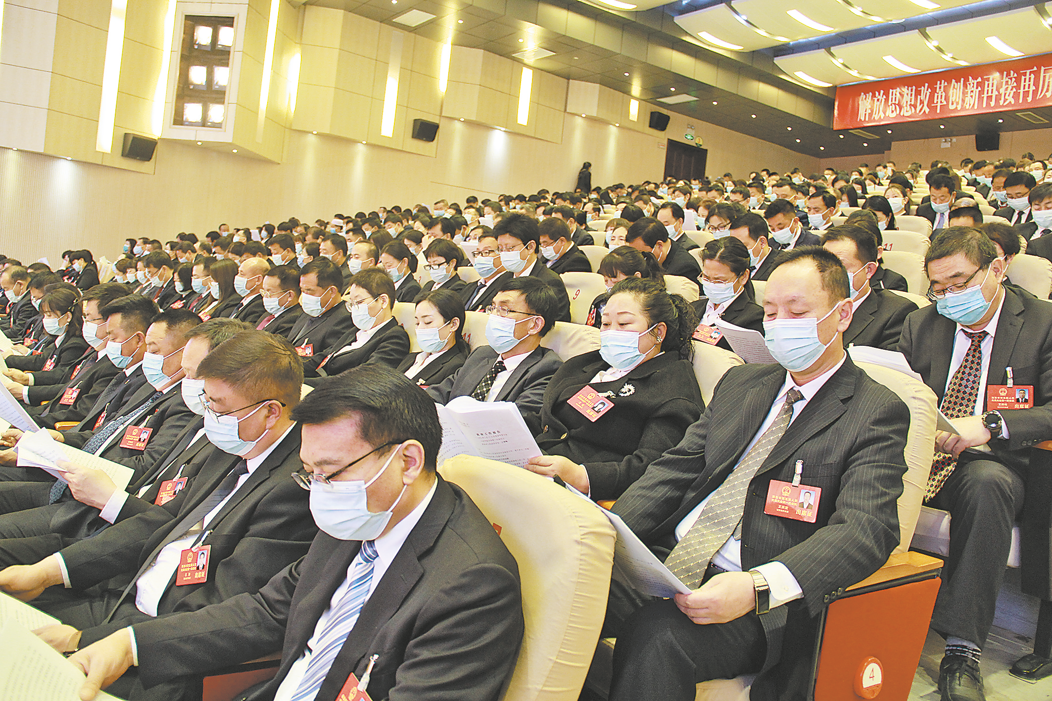 △3月27日,出席市五屆人大一次會議的代表們認(rèn)真審議政府工作報告。 (本報記者 劉 媛 攝)