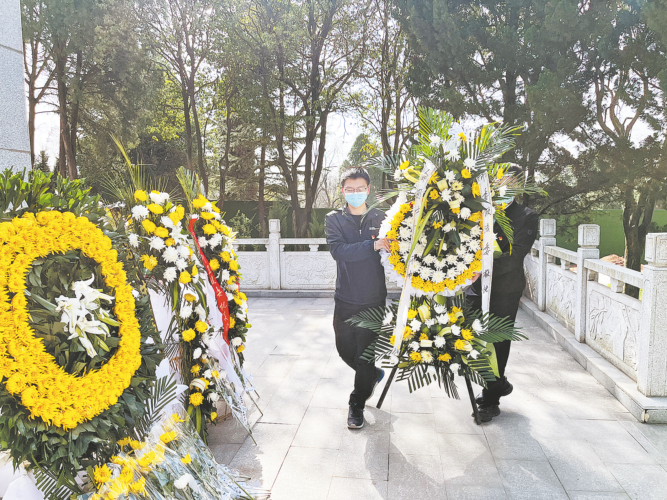 4月2日,市委政法委組織全體黨員走進(jìn)市烈士陵園,開展“祭先烈傳承精神,礪初心奮勇前行”主題黨日活動(dòng),全體黨員懷著崇敬之情集體默哀,為烈士敬獻(xiàn)花籃,并朗誦“清明,我用詩歌祭奠先烈”,表達(dá)對(duì)烈士的哀思和敬意。 (本報(bào)記者 方方 攝)