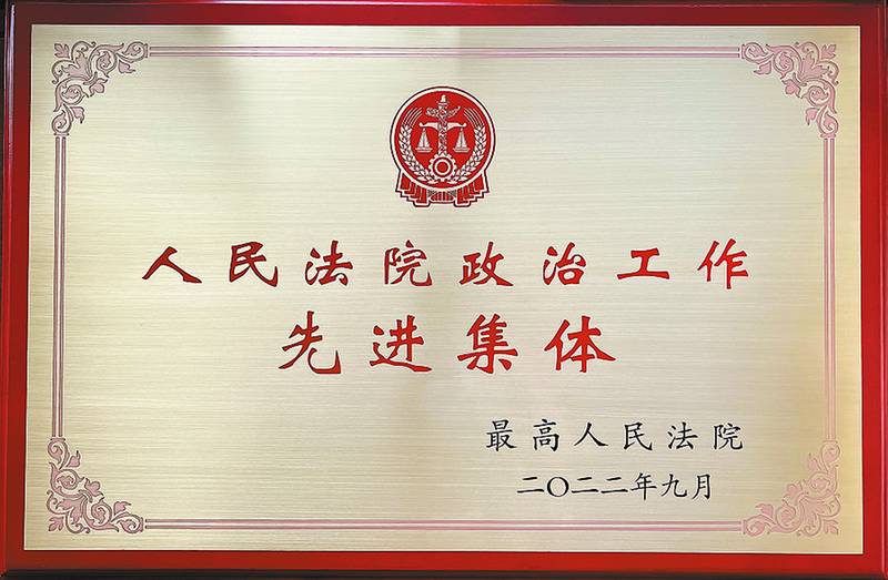 市中院被最高人民法院表彰為人民法院政治工作先進集體