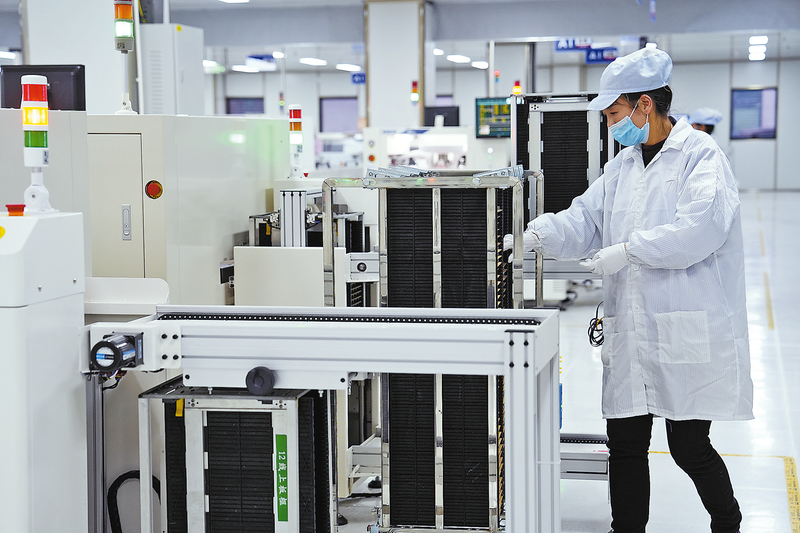 12月1日,在陜西普陽時代電源有限公司,工作人員正在檢查工業(yè)電源線路板質(zhì)量。