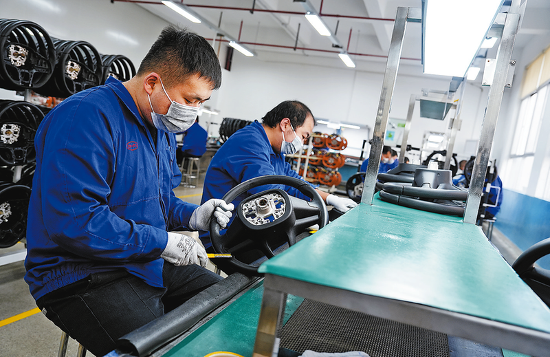 12月2日,在商洛比亞迪有限公司汽車零部件產(chǎn)業(yè)園二期方向盤生產(chǎn)車間,工人正對新生產(chǎn)的方向盤進行最后的打磨加工。