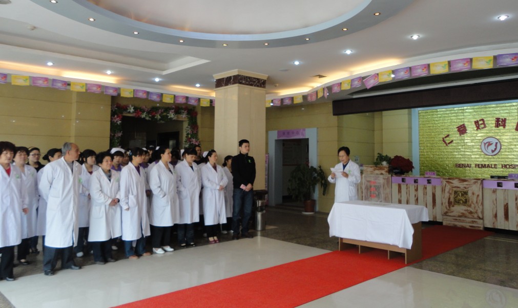 仁愛醫(yī)院婦產(chǎn)科主任代表發(fā)言 全體員工佩帶綠絲帶