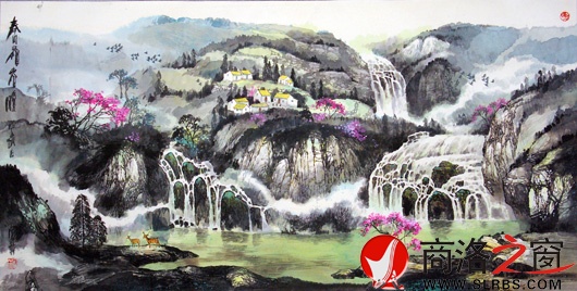人們都知道,劉鳳林的山水畫文人氣息濃厚,他不畫大山大水,也不畫急流險灘,最喜畫的是山村野店,溪流淙淙;桃花盛開,村姑道情;犬吠深巷,飛鳥相還。這些鮮活的生活小景,在他的筆下信手拈來,自然成趣。為畫好商洛山水,他常常外出寫生,風雨無阻,厚厚的幾大本速寫簿記錄著他的酸、甜、苦、辣,在厚積薄發(fā)中逐漸形成個人風格。劉鳳林用短短十年時間,打造了屬于他的個人山水空間,在中國畫壇享有盛譽,但是他并沒有居功自傲,反而在山水畫題材及表現(xiàn)上開拓出新的意境,在山水中增添了山鹿題材,足見其藝術(shù)進一步成熟,藝術(shù)視野進一步開闊。
