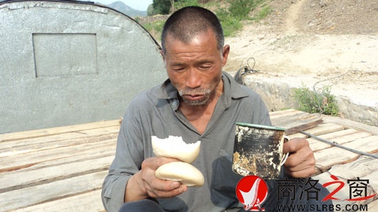 兩個饅頭,一缸子茶就是陳江富的午餐。