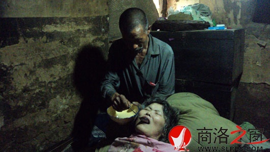陳江富在給妻子喂飯
