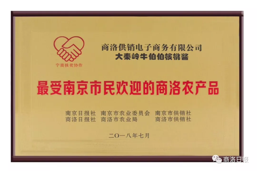 大秦嶺牛伯伯品牌核桃醬被授予“最受南京市民歡迎的商洛農(nóng)產(chǎn)品”榮譽(yù)稱號