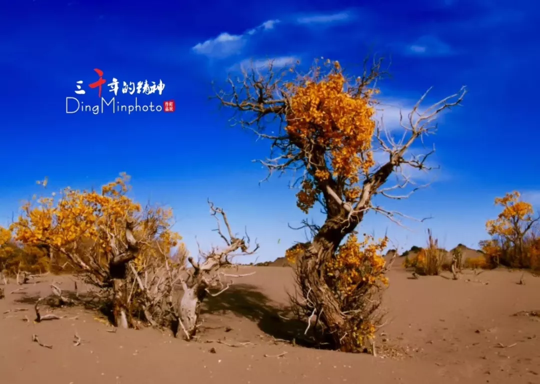 張老師的微信ID叫胡楊林,他說,他十分欣賞胡楊堅(jiān)韌不拔的性格,它常年生長(zhǎng)在沙漠中,耐寒、耐旱、耐鹽堿、抗風(fēng)沙,有很強(qiáng)的生命力,是一種神奇的樹、英雄的樹,春夏為綠色,秋天為黃色,冬天為紅色,“生千年而不死,死千年而不倒,倒而千年不朽”。正因?yàn)槿绱耍恢币詠矸浅P蕾p、崇拜胡楊,向往胡楊。
