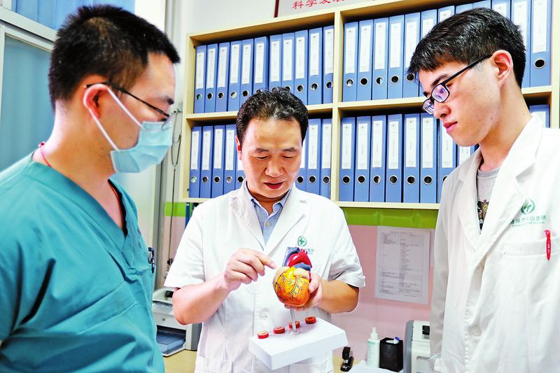 王文鋒非常珍惜這個(gè)來(lái)之不易的深造機(jī)會(huì),深感責(zé)任重大,不敢懈怠。他迅速適應(yīng)學(xué)習(xí)單位“朝八晚九午不休”的工作狀態(tài),積極融入國(guó)內(nèi)一流心血管團(tuán)隊(duì),得到了眾多專家的熏陶和指點(diǎn),特別是他的導(dǎo)師、我國(guó)著名心臟病專家呂樹錚教授熱忱為師,樂于傳道授業(yè)又幽默風(fēng)趣,對(duì)王文鋒提出的問(wèn)題總是知無(wú)不入淺出、層層剖析,從心臟解剖、生理病理到各種器械、設(shè)備性能,從冠脈造影到球囊擴(kuò)張、支架植入,從讀圖識(shí)圖到策略選擇,從基本操作到冠脈旋磨、逆向開通血管等高難度技術(shù),無(wú)不細(xì)心講解,或畫圖解析,或親自示范,直到學(xué)生弄通弄懂為止。呂教授還在手術(shù)室鉛屏外現(xiàn)場(chǎng)指導(dǎo)王文鋒等學(xué)生做心肌梗死介入手術(shù),每次都從細(xì)節(jié)入手,詳細(xì)講解指導(dǎo),這些場(chǎng)景讓王文鋒至今記憶猶新。