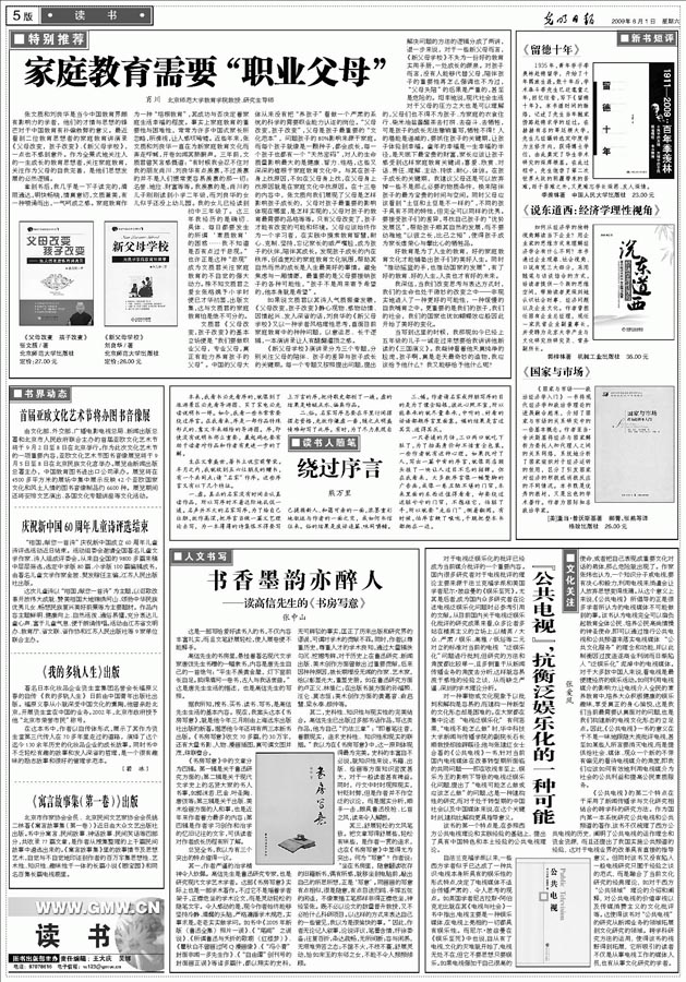 張中山于2009.8.1《光明日報(bào)》刊發(fā)《書香墨韻亦醉人》