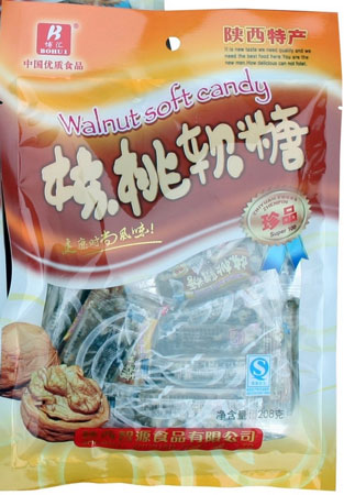 “博匯”牌核桃軟糖選用優(yōu)質(zhì)核桃仁為原料,配以葡萄干,麥芽糖,蜂蜜,精制的高級(jí)糖果。陜西智源食品有限公司成立于2000年8月,是集生產(chǎn)、貿(mào)易、科研為一體的股份制企業(yè)。公司固定資產(chǎn)投資840萬(wàn)元,職工12人,有年產(chǎn)1000噸核桃粉,500噸核桃糖,160噸核桃油,100噸琥珀桃仁,10000噸純凈水的生產(chǎn)線各一條。
