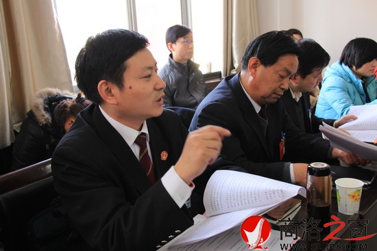 二月三日,參加政協(xié)商洛市三屆一次會(huì)議的政協(xié)委員,認(rèn)真討論市法院、檢察院工作報(bào)告。(記者 劉占良 攝)