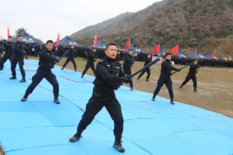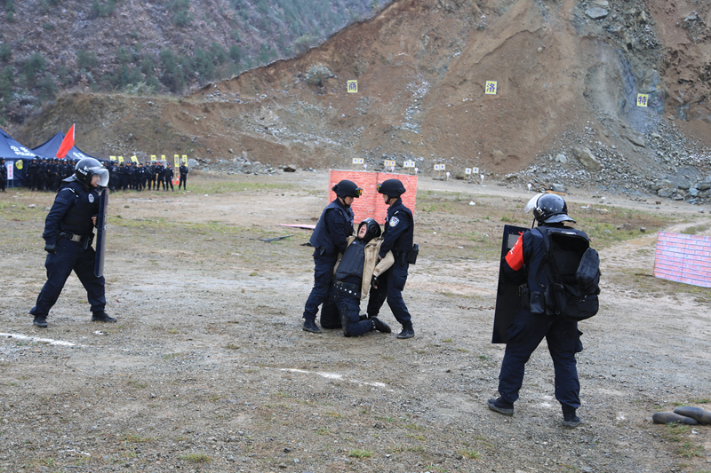 11月24日7時(shí),市公安局副局長樊永生下達(dá)集結(jié)命令,各參戰(zhàn)單位全員全裝按時(shí)抵達(dá)集結(jié)點(diǎn),統(tǒng)一向演練現(xiàn)場出發(fā)。9時(shí),全市巡特警隊(duì)員到達(dá)演練現(xiàn)場,在考核組安排下進(jìn)行了92式手槍對人體半身部位靶射擊、9mm轉(zhuǎn)輪手槍對胸環(huán)靶實(shí)彈射擊、95式5.8mm自動步槍搜索射擊、五公里武裝越野等考核科目。隨后,市局巡特警支隊(duì)和商州分局、丹鳳、山陽、鎮(zhèn)安縣局巡特警大隊(duì)分別進(jìn)行了棍術(shù)、連接式警棍、盾牌警棍術(shù)、擒敵拳、校園劫持人質(zhì)事件快速處置等演練。演練過程中,全市巡特警隊(duì)員克服天氣寒冷、路程較遠(yuǎn)等不利因素的影響,艱苦奮斗、令行禁止,充分發(fā)揚(yáng)巡特警隊(duì)伍的優(yōu)良作風(fēng)。11時(shí)40分,考核演練科目全部結(jié)束,楊社會副處長、趙黎軍副局長分別對此次驗(yàn)收考核暨跨區(qū)域拉動演練活動進(jìn)行了點(diǎn)評,對于演練活動給予了充分肯定,要求全市巡特警部門要以此次演練為契機(jī),進(jìn)一步強(qiáng)化實(shí)戰(zhàn)技能和合成作戰(zhàn)演練,把全市巡特警隊(duì)伍鍛造成一支素質(zhì)高、作風(fēng)硬,關(guān)鍵時(shí)刻能夠拉得出、打得贏的公安尖刀隊(duì)伍。