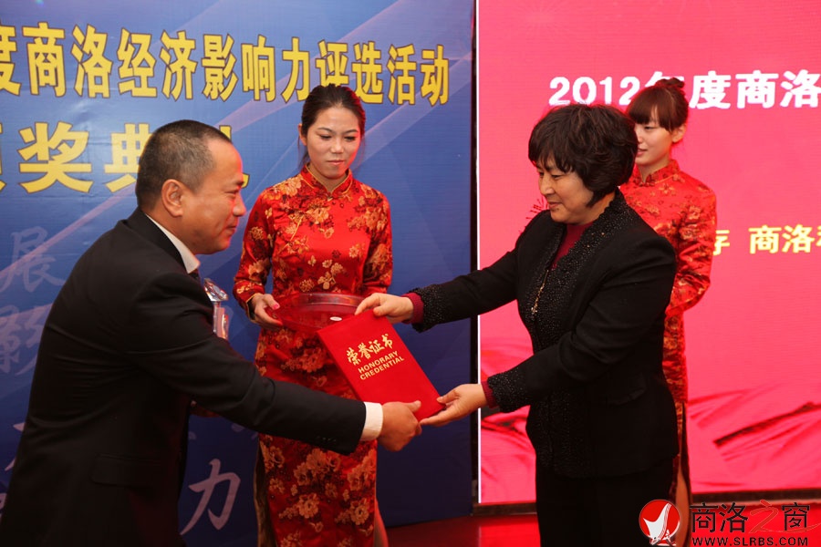 市委常委、宣傳部部長劉淑慧為2012年度商洛最具經(jīng)濟(jì)影響力人物獎項獲得者頒獎。 (本組圖片攝影/方立)