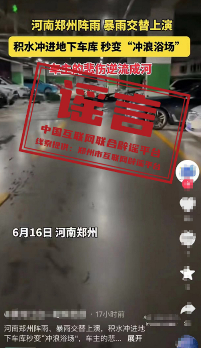 謠言:河南鄭州積水沖進(jìn)地下車庫(kù)?