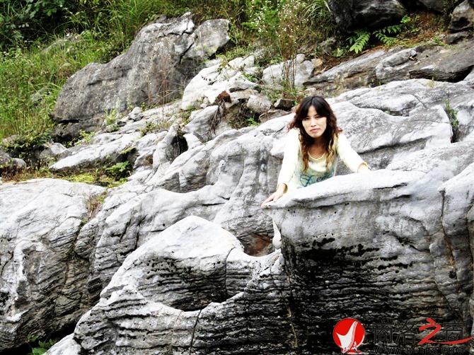 在江山石林中,她眼里發(fā)現(xiàn)的石床。