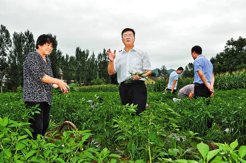 宋洛民和扶貧工作隊隊員幫助群眾采摘辣椒