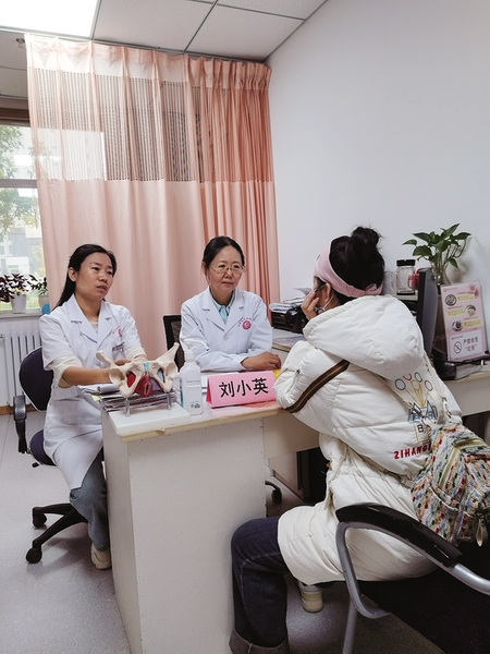 西北婦女兒童醫(yī)院盆底與產(chǎn)后康復中心主任劉小英(右)幫帶市婦幼保健院婦女康復科醫(yī)生郭艷(左)一起看診