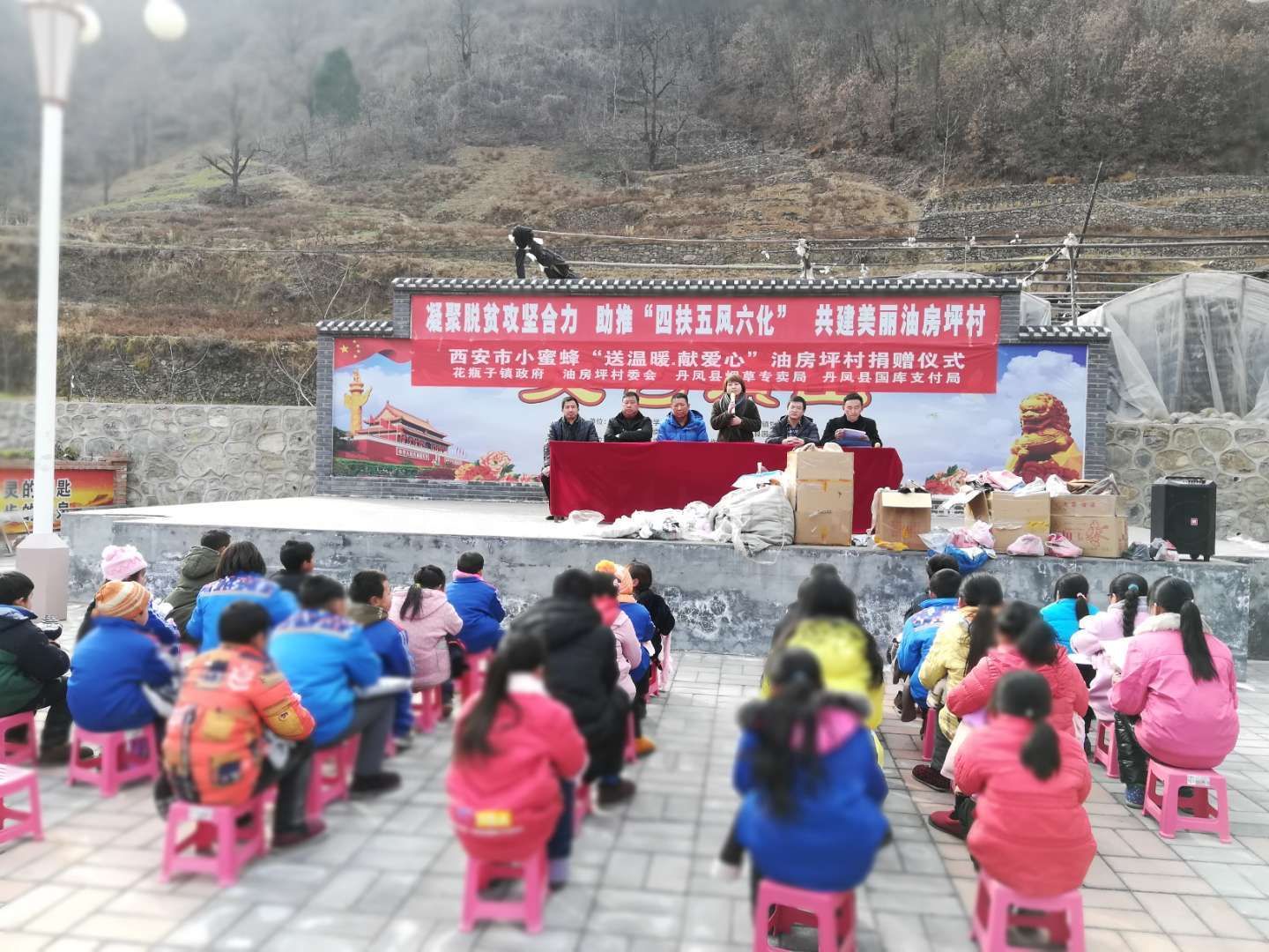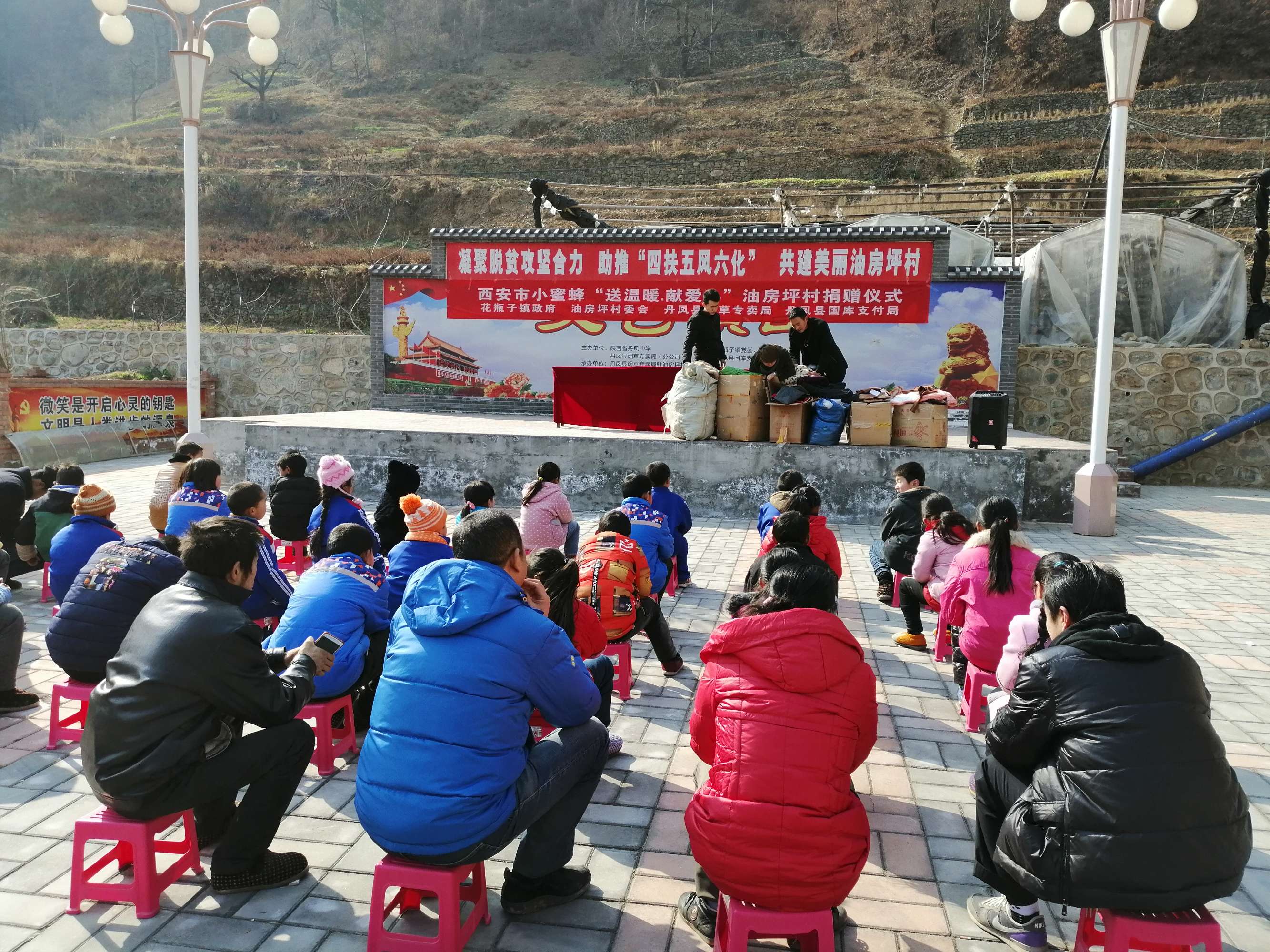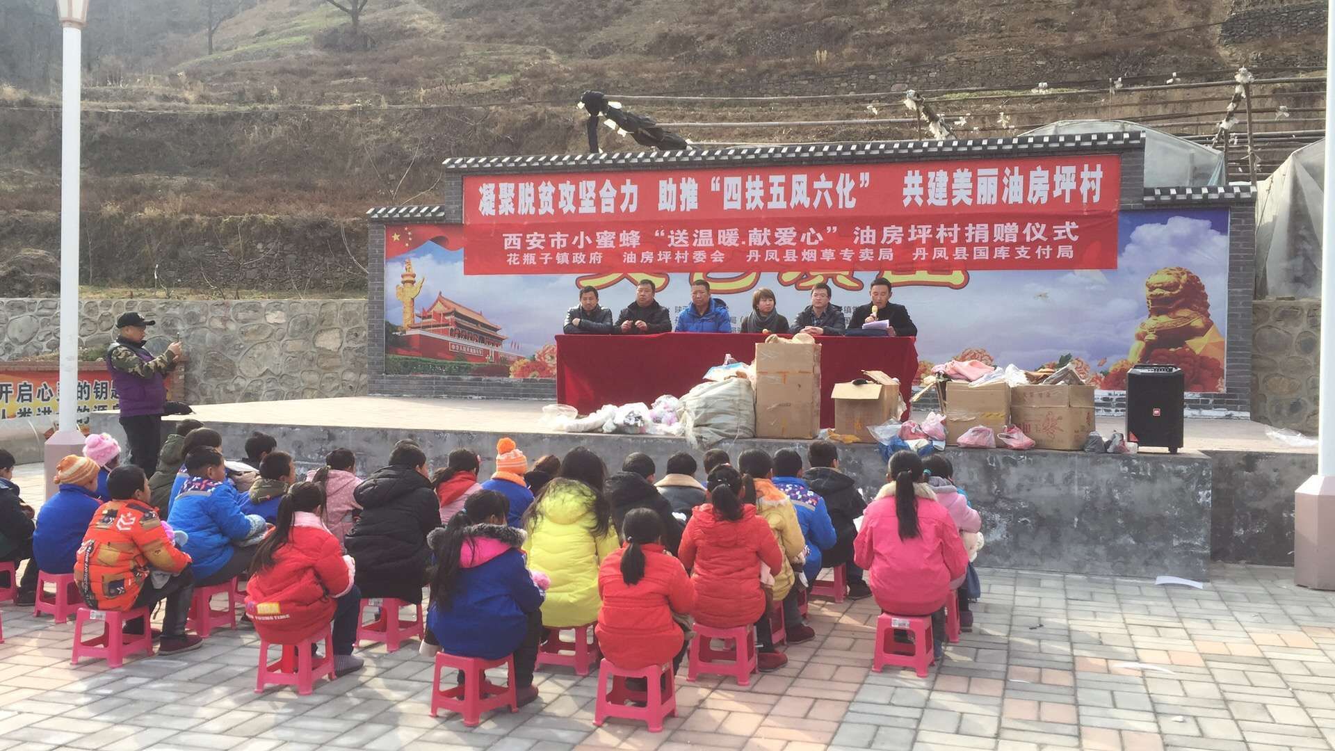 2018年1月19日,西安市小蜜蜂慈善公益組織負(fù)責(zé)人汪女士,攜手丹鳳縣煙草局黨支部、丹鳳縣國(guó)庫(kù)支付局黨支部暨花瓶子鎮(zhèn)政府,冒著嚴(yán)寒,從西安省城來(lái)到油房坪村,開(kāi)展“送溫暖、獻(xiàn)愛(ài)心”溫暖衣發(fā)放儀式,對(duì)30名留守兒童發(fā)放羽絨服、保暖內(nèi)衣、圍巾、耳套、鞋子、裙子等價(jià)值1萬(wàn)余元物品,用實(shí)際行動(dòng)詮釋著人間最質(zhì)樸的愛(ài),受到捐贈(zèng)的留守兒童,他們非常感謝黨和人民的關(guān)懷以及社會(huì)這么多好心人為他們送去的衣物,在以后的生活學(xué)習(xí)中,學(xué)會(huì)感恩,以?xún)?yōu)異的成績(jī)回報(bào)各級(jí)領(lǐng)導(dǎo)以及社會(huì)的關(guān)懷。