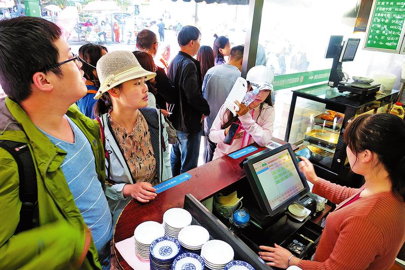 南京是一個包容性極強的城市,南北菜品匯集于此,同時快節(jié)奏的都市生活,也為丹鳳人經營的面食提供了市場。這是著名的南京大排檔,來南北客,品南北菜。(8月26日攝)