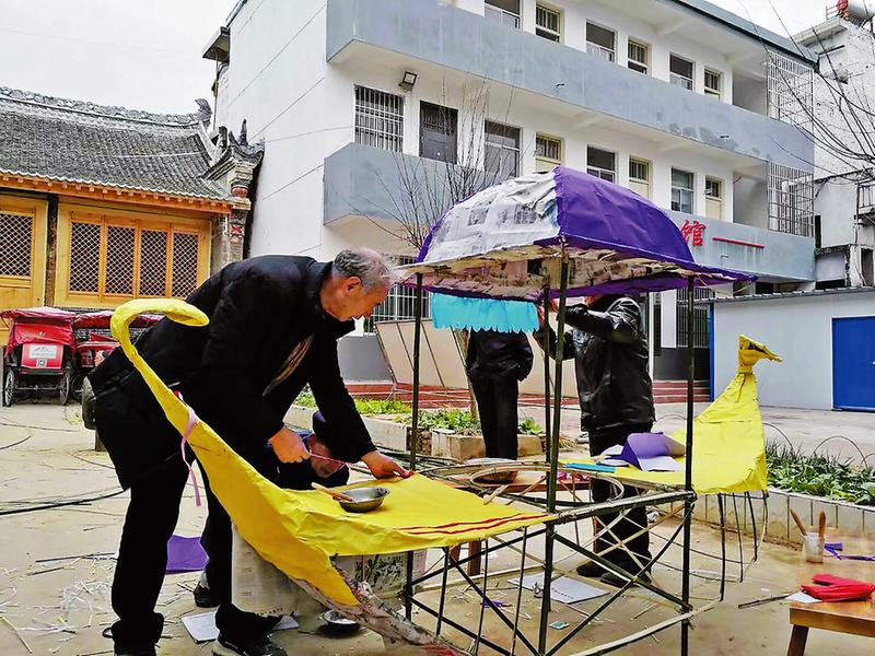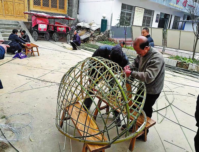 項(xiàng)書善今年72歲,家住竹林關(guān)村三組,是一名退休教師。據(jù)項(xiàng)老師回憶,他很小的時候,就對花燈產(chǎn)生了濃厚的興趣,跟著大人學(xué)習(xí)花燈手藝,獅子頭、龍燈、花燈他都綁過,村上人都知道他有這門手藝。說起花燈,項(xiàng)老師如數(shù)家珍:“花燈的種類可多啦,動物、植物、人物,只要腦海想到的都可以做出來,金魚的頭部和尾巴要能夠擺動,羊的犄角要能夠打架,蝴蝶的翅膀要能扇得動。如果是鼠年就要做老鼠,老鼠必須走在最前面……”從二十世紀(jì)80年代起,竹林關(guān)人就開始?;簦瑥拇竽瓿趿秸率?,把全鎮(zhèn)跑個遍,最后集中在竹林關(guān)街道進(jìn)行文藝匯演。“好久沒做花燈了,上次做的獅子由于角度問題嘴巴張不開,后來大家商量著才做好。”對于制作花燈,項(xiàng)老師傾注了太多的感情。