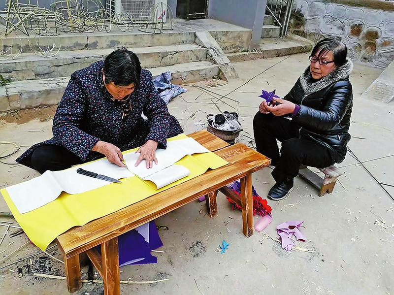 在制作花燈的團(tuán)隊(duì)里,王玉蘭主要負(fù)責(zé)裱糊及裝飾。對于扎花燈,王玉蘭特別有經(jīng)驗(yàn):“以前花燈里用的是蠟,用枸樹皮做的綿紙裱糊,裱一層,再裱一層。花燈要用很多種顏色,襯托得花紅柳綠,格外喜慶。全架燈48對,半架燈24對,雞、船、魚、西瓜……心里想的都可以做出來。”王玉蘭拿出自己拍的花燈視頻,開心地講述她與花燈的緣分。花燈的工序雖然算不上復(fù)雜,但也極需耐心,先是根據(jù)圖案定好紙張的大小,再搭配好顏色,按照自己的想象將其糊上,糊起之后還要對花燈裝點(diǎn)一番。