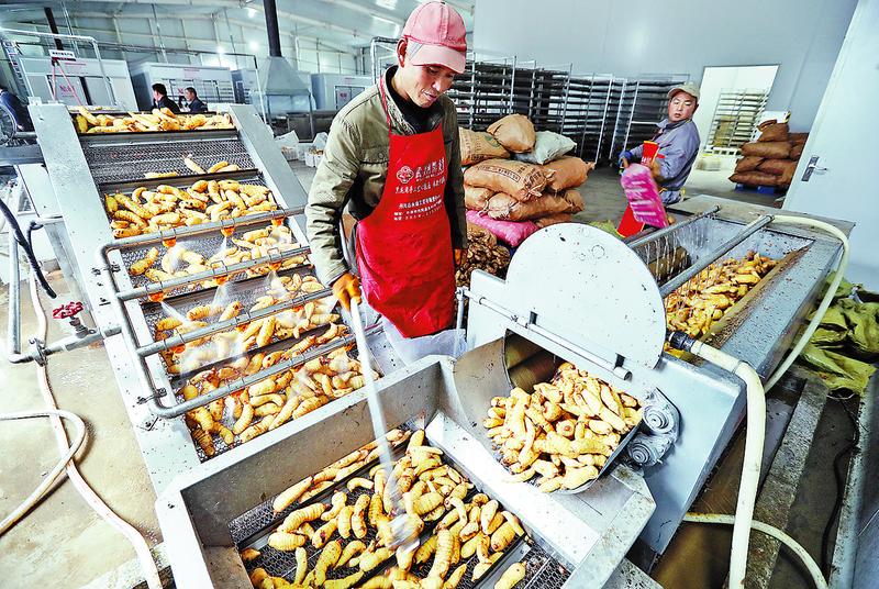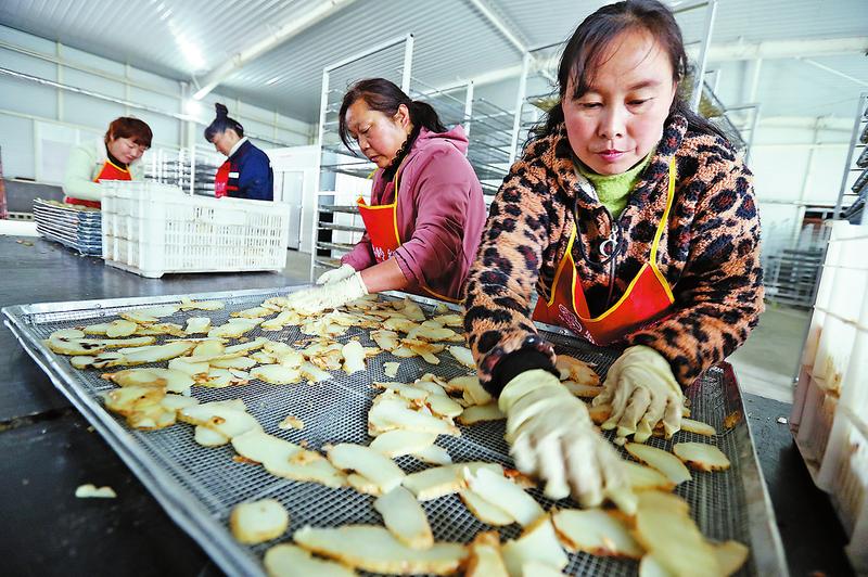 在丹鳳縣良種天麻產(chǎn)業(yè)園,一輛輛滿載天麻的卡車開(kāi)入園區(qū),工人們卸下一袋袋“土黃金”送入天麻產(chǎn)品加工車間。在成品車間,只見(jiàn)藥用天麻切片、天麻掛面、精細(xì)天麻粉和天麻酒等系列深加工產(chǎn)品放滿車間。