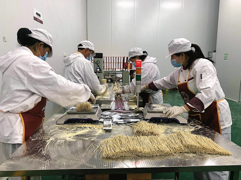 近日,良種天麻產(chǎn)業(yè)園的天麻掛面生產(chǎn)線上,50名當(dāng)?shù)厝罕娬谔炻閽烀妗⑻炻槠吞炻槌凵a(chǎn)線上積極地生產(chǎn)工作。2023年年底,隨著國(guó)家衛(wèi)生健康委員會(huì)和市場(chǎng)監(jiān)督管理總局正式發(fā)文,將天麻等9種物質(zhì)納入《按照傳統(tǒng)既是食品又是中藥材的物質(zhì)目錄》,良種天麻產(chǎn)業(yè)園順勢(shì)而動(dòng),申辦了食品生產(chǎn)許可證,之前一直處于研發(fā)階段的天麻食品產(chǎn)品,正式進(jìn)入了市場(chǎng)。