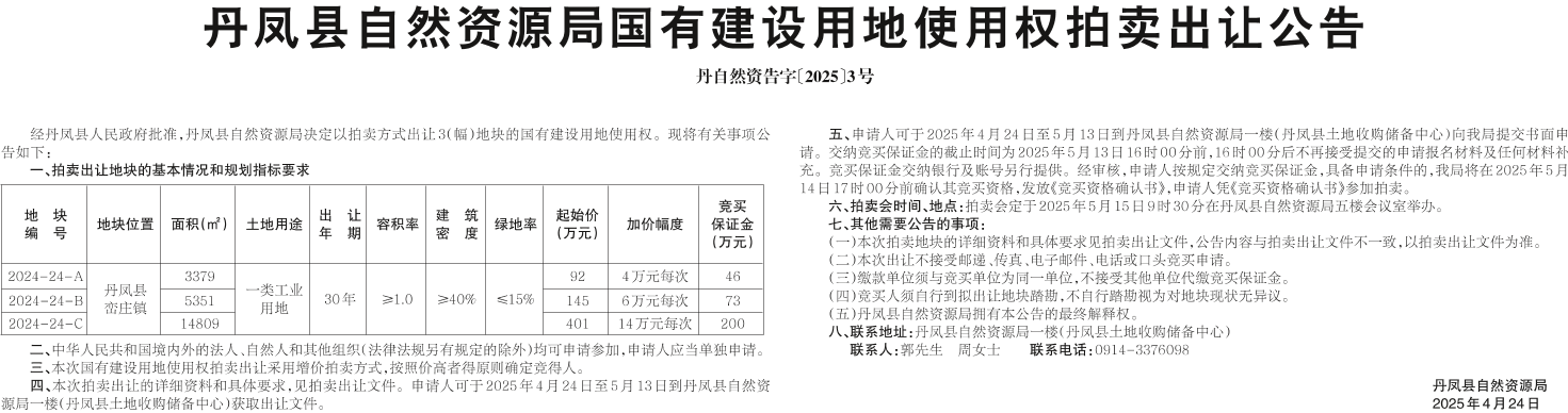 丹鳳縣自然資源局國有建設(shè)用地使用權(quán)拍賣出讓公告
