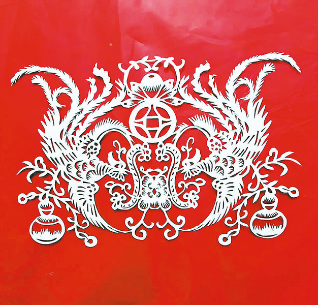 丹鳳剪紙歷史悠久,在商鞅封邑古城出土的古磚瓦當(dāng)上,能看到許多與丹鳳剪紙風(fēng)格和技法極為相似的紋飾。丹鳳地處“秦頭楚尾”,作為南北文化交會(huì)之地,這種獨(dú)特的地理文化背景也孕育出丹鳳剪紙獨(dú)樹一幟的藝術(shù)風(fēng)格,既有江南的細(xì)膩娟秀,又兼具北方的粗獷大氣。在選材上,丹鳳剪紙題材十分廣泛,既有福祿壽禧、山川樹木、花鳥蟲魚,又有神話故事、戲曲人物以及勞動(dòng)人民的勞動(dòng)生活場(chǎng)景等。今年3月,丹鳳剪紙成功入選商洛市第六批非物質(zhì)文化遺產(chǎn)名錄。