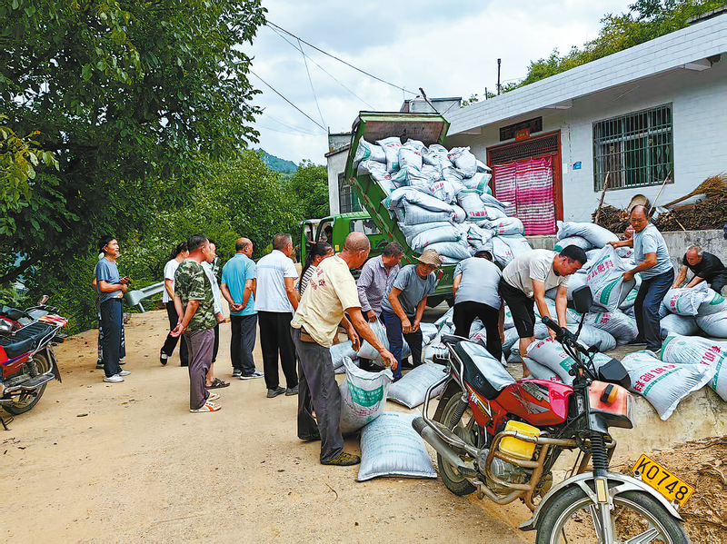 近日,丹鳳縣竹林關(guān)鎮(zhèn)孤山坪村黨支部聯(lián)系上級(jí)部門爭取到100多噸化肥,在村委會(huì)的統(tǒng)籌下,化肥免費(fèi)發(fā)放至全村578戶群眾手中,有效保障秋播生產(chǎn)。 (本報(bào)通訊員 陳 庚 攝)
