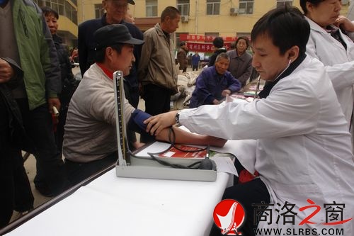 醫(yī)療衛(wèi)生服務(wù)臺(tái)前,專家正忙碌著為大家測(cè)體溫、量血壓、開處方。