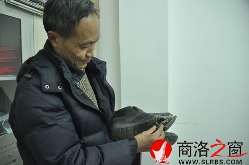 李德應(yīng)拿起一雙破皮鞋告訴記者,15年來已穿破了30多雙。