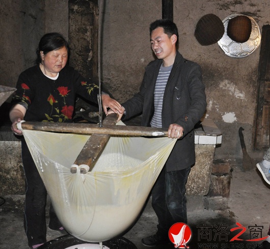 老人說,她的豆腐坊開張后,村里人們紛紛開起了豆腐店,從此都稱寨兒嶺為“豆腐街”。其中以秦紅英家的豆腐坊規(guī)模最大。后來的豆腐坊也不再是單純制作豆腐,同時(shí)也增加了豆芽、粉條等各種副食品,豆腐坊也改稱為“粉坊”,所以人們都稱秦家的豆腐坊為“秦粉坊”。如今老人仍然堅(jiān)持天天做豆腐賣。