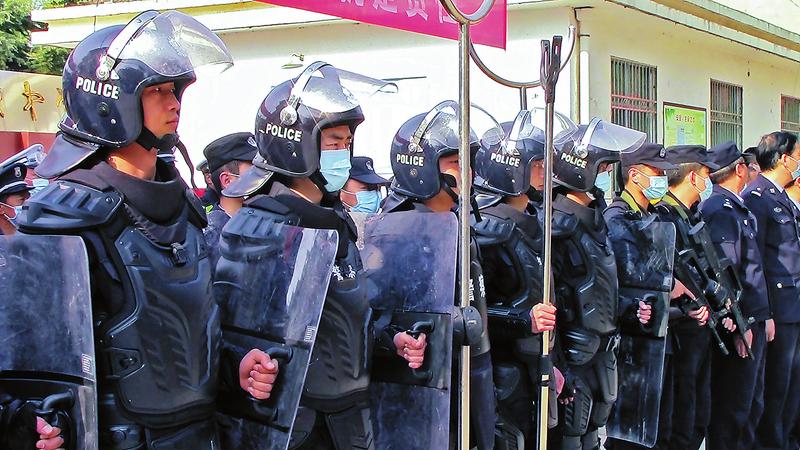 “喂,110嗎,我是校警,這里剛發(fā)生‘武瘋子’傷人事件,快點(diǎn)來!”4月8日9時(shí)30分,洛南縣公安局110指揮中心接群眾報(bào)警后,指令轄區(qū)派出所迅速出警,并快速集結(jié)反恐、巡特警、治安、交管大隊(duì)等部門的60名民警火速趕赴現(xiàn)場(chǎng)。這是洛南縣公安局組織的一場(chǎng)多警種協(xié)同作戰(zhàn)練兵活動(dòng),拉開了洛南公安2020反恐防暴演練帷幕。