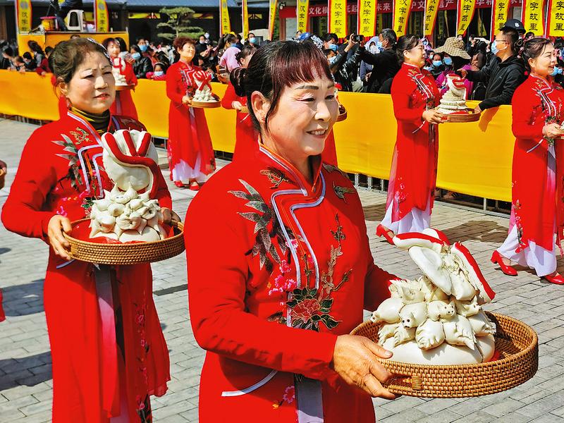 4月19日,民間谷雨祭祀倉頡活動(dòng)在洛南縣保安鎮(zhèn)舉行。在現(xiàn)場(chǎng)做好疫情防控的同時(shí),身著漢服、列隊(duì)整齊的儀仗隊(duì)員們分開走在倉圣大殿門前廣場(chǎng),表演古典樂舞感恩,敬獻(xiàn)五谷、花籃、牲畜祭品和28字花饃等以緬懷倉頡造字偉績。據(jù)了解,洛南縣民間谷雨祭祀倉頡活動(dòng)有著數(shù)千年的悠久歷史,活動(dòng)每年舉辦一次,極大地增強(qiáng)了人們對(duì)中華民族和中華文化的認(rèn)同感、歸屬感和自信心。(姚渤潮 攝影報(bào)道)
