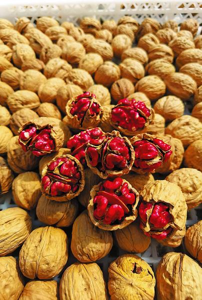 近年來,洛南縣將發(fā)展紅仁核桃產(chǎn)業(yè)作為生態(tài)富民的新路徑和新抓手,采取抓點示范和技術(shù)包抓機制,加強科學(xué)技術(shù)管理,紅仁核桃實現(xiàn)了豐產(chǎn)高效。洛南縣核桃研究所所長郭安柱說:“目前洛南縣核桃面積68萬畝,預(yù)計今年產(chǎn)量4.6萬噸、產(chǎn)值6.4億元,其中紅仁核桃累計發(fā)展面積5000畝,已經(jīng)掛果面積1320畝,預(yù)計產(chǎn)量15噸、產(chǎn)值300萬元。由于紅仁核桃是從2017年開始成規(guī)模發(fā)展,目前才進(jìn)入初果期,畝產(chǎn)量較低,但每公斤紅仁核桃的平均銷售價在200元以上,比普通核桃的市場價格要高10多倍。”
