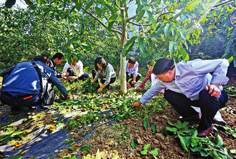 市、縣核桃研究所專家及技術(shù)人員對核桃生長、結(jié)果及產(chǎn)量進(jìn)行現(xiàn)場測評。
