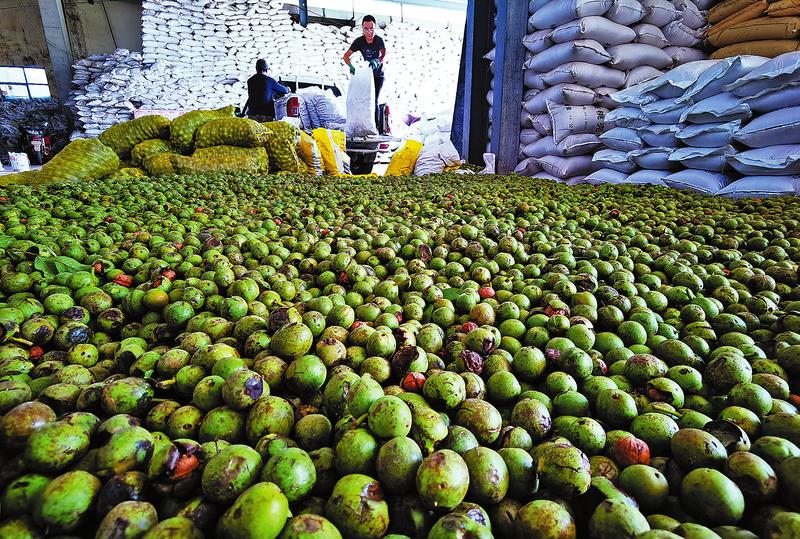 商洛盛大實業(yè)股份有限公司從紅仁核桃基地采收回來的青皮核桃