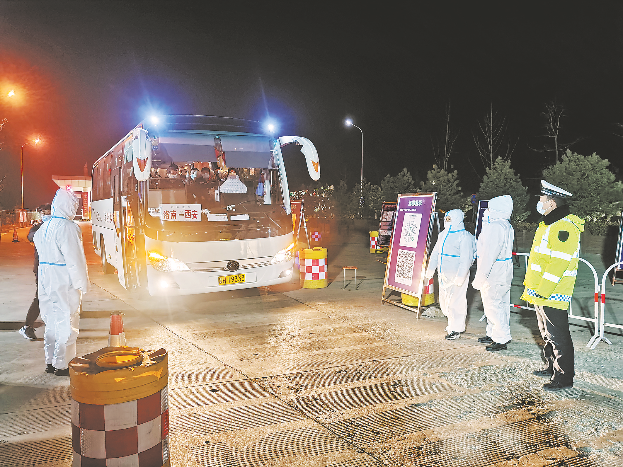 “必須在收費站接受檢查……”1月1日凌晨2點,室外零下6攝氏度,永豐鎮(zhèn)李村志愿者林祥武、孫錚亮巡回在榆商高速李村段,嚴防死守來洛人員跨越護欄逃避防疫檢查。