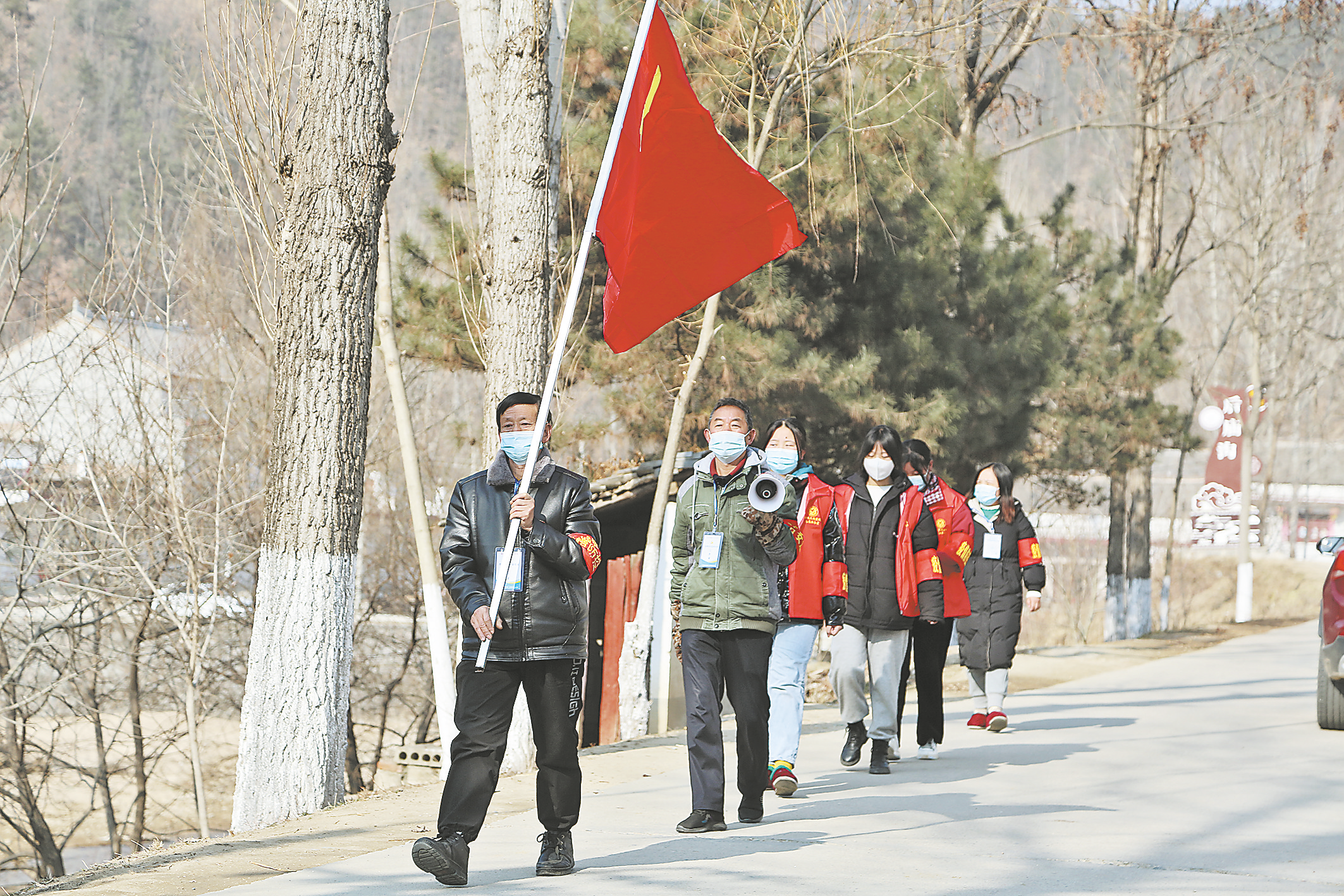 在洛南縣社區(qū)、農(nóng)村疫情防控一線,紅馬甲與鮮紅的黨旗一起筑起了阻擊疫情的牢固防線。