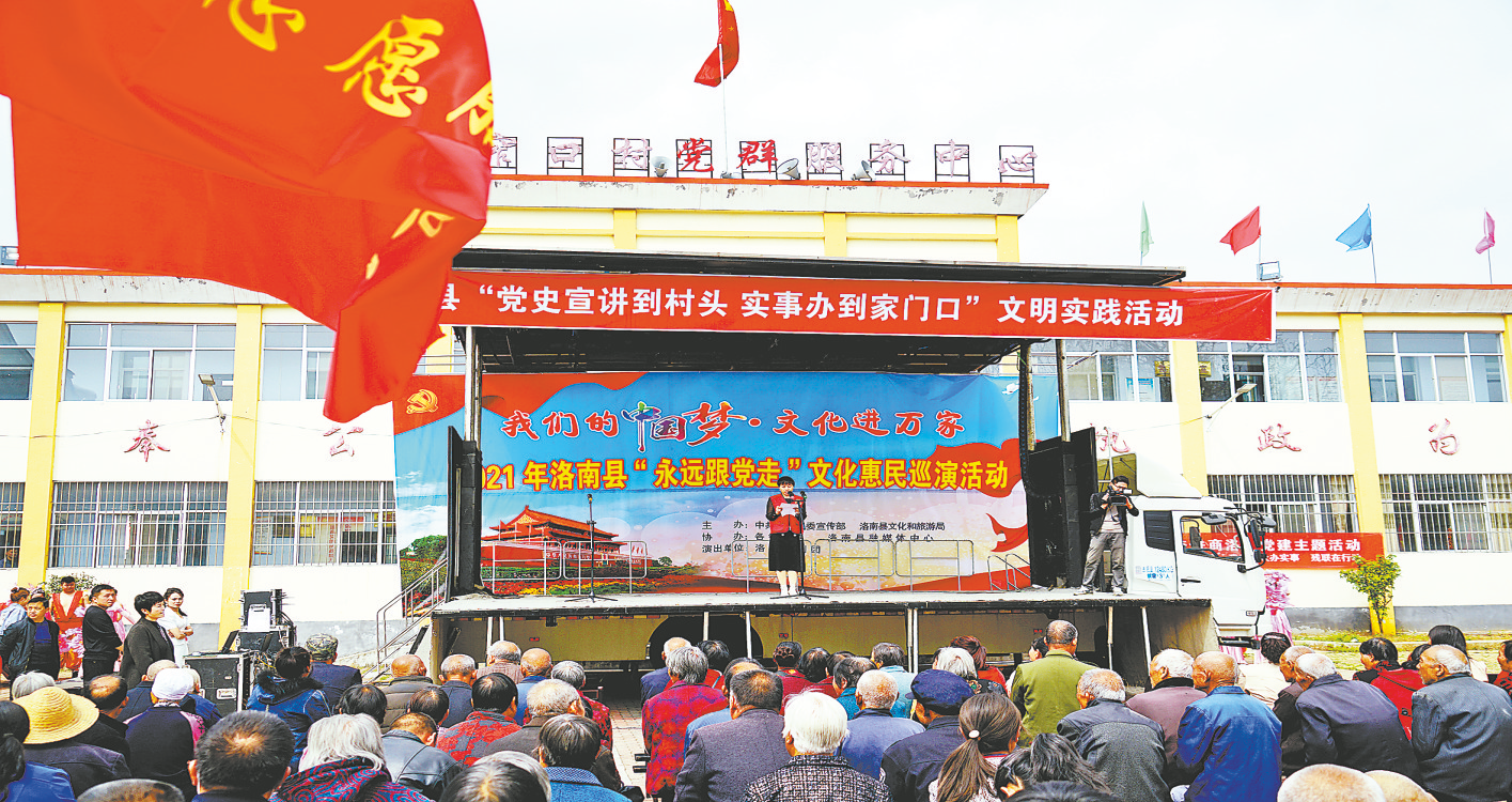 黨的建設(shè)全面加強(qiáng)(圖為黨史宣講到村頭)