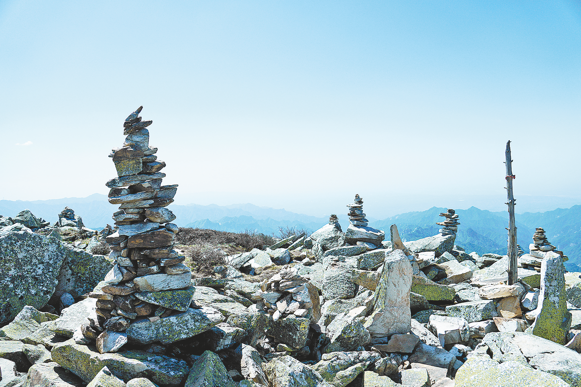 登山愛好者在草鏈嶺山頂堆砌的瑪尼堆