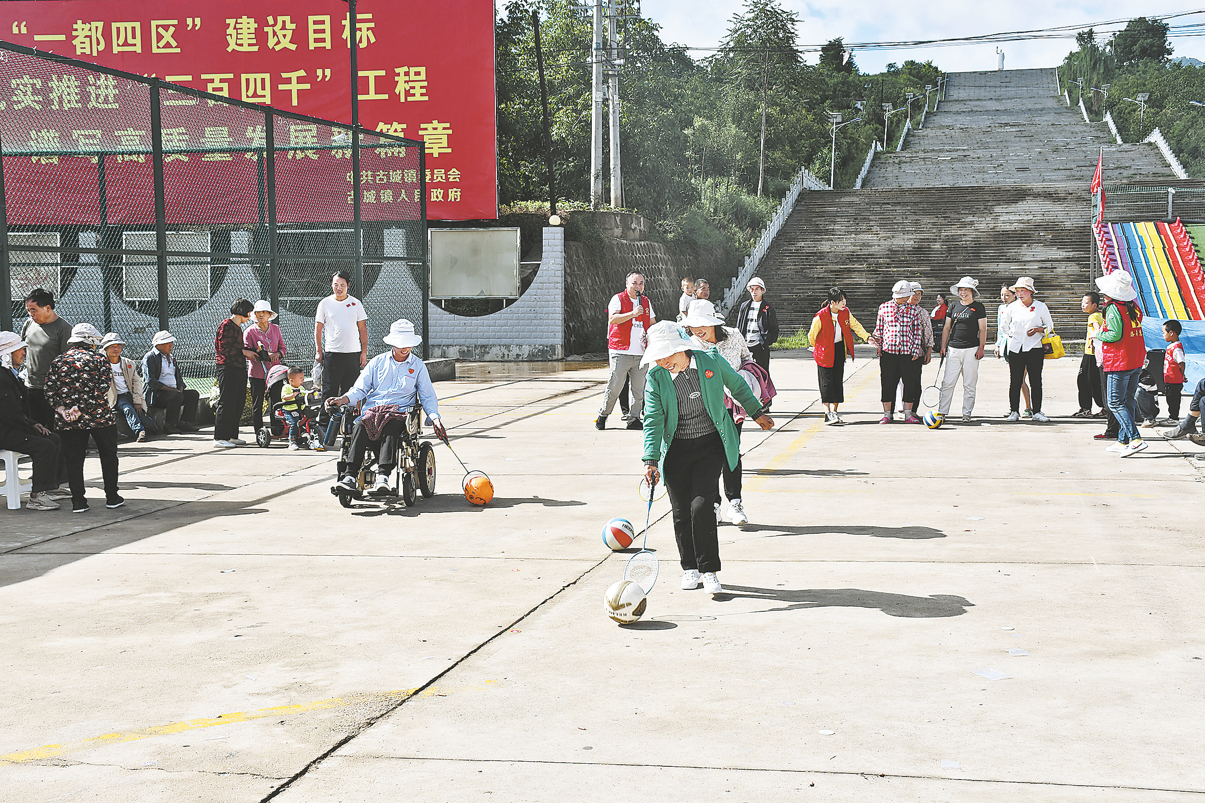 本次活動主題為“特奧賦能、你我同行、殘健融合、喜迎二十大”,古城鎮(zhèn)紅旗、草店等8個村、社區(qū)的120名殘障人士代表及家屬和志愿者參加活動,活動共設置了沙包投壺、趕“豬”跑、接力賽等5個趣味項目,參賽人員分為陽光隊、希望隊、夢想隊、旗勝隊4個隊進行比賽。