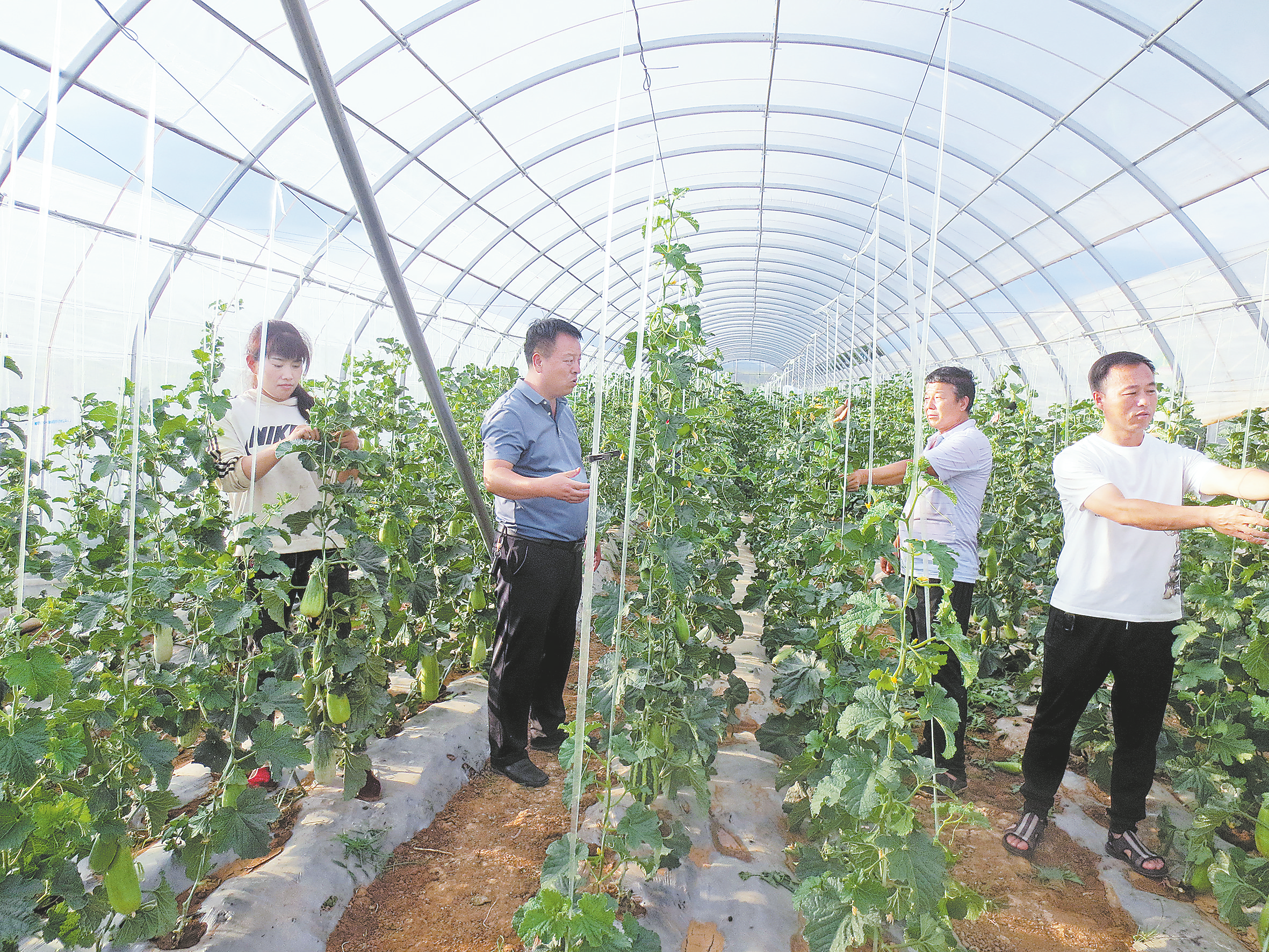 盛夏七月,正是瓜果成熟、香飄田園的季節(jié)。走進洛南縣四皓街辦中心村無公害蔬菜產(chǎn)業(yè)園,映入眼簾的是一棚棚相繼成熟的小甜瓜,一株株黃瓜、西紅柿藤蔓上掛滿累累果實,菜農(nóng)們正在忙著采摘成熟的瓜果,分級打包、裝箱,一派豐收美景。